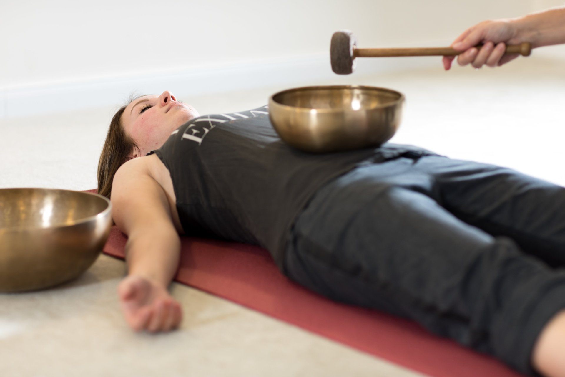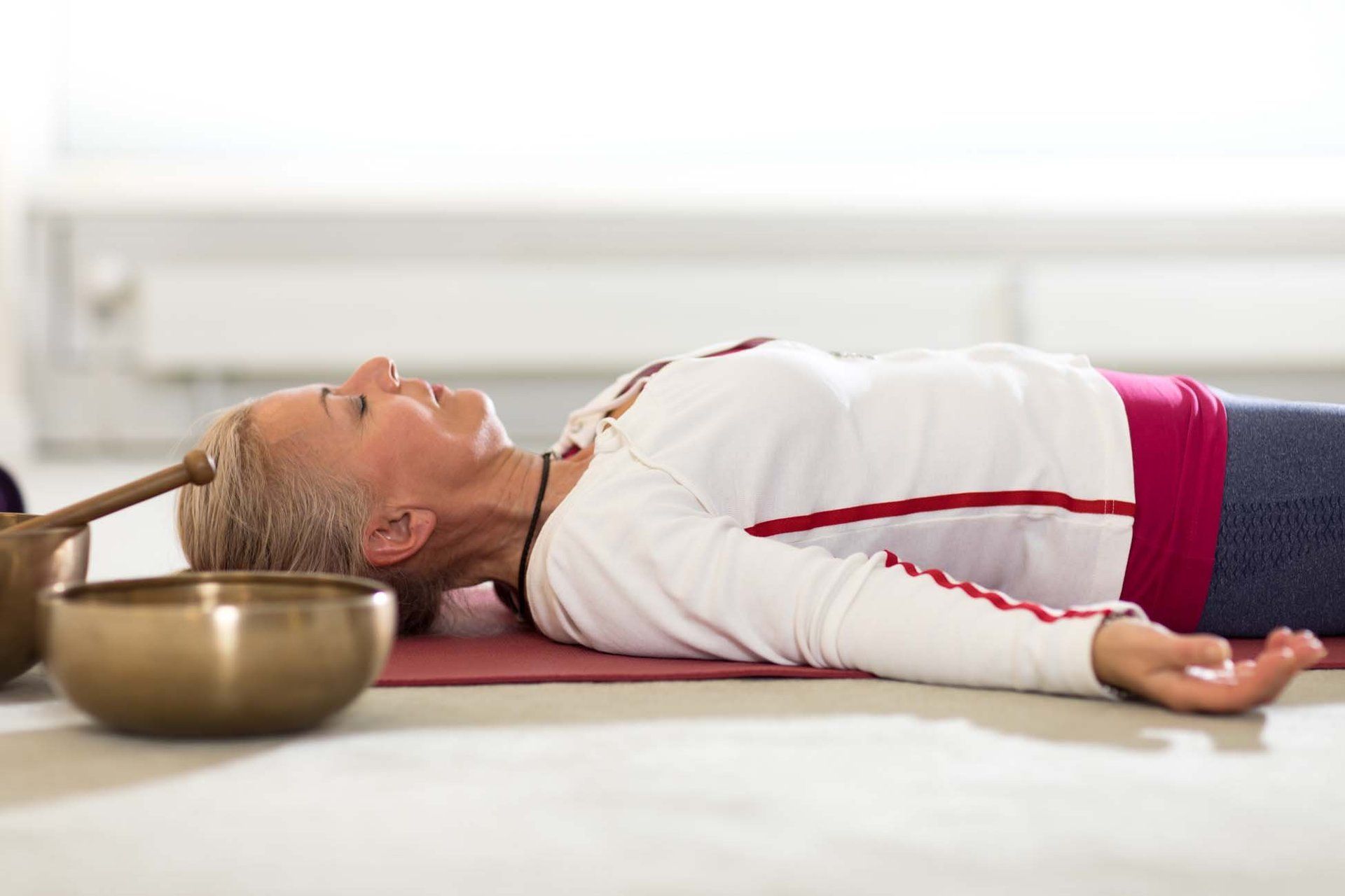 Bei einer ausgiebigen Tiefenentspannung werden die Klangschalen auf dem Körper aufgestellt. Regeneration und Wohlbefinden stellt sich gleich ein.